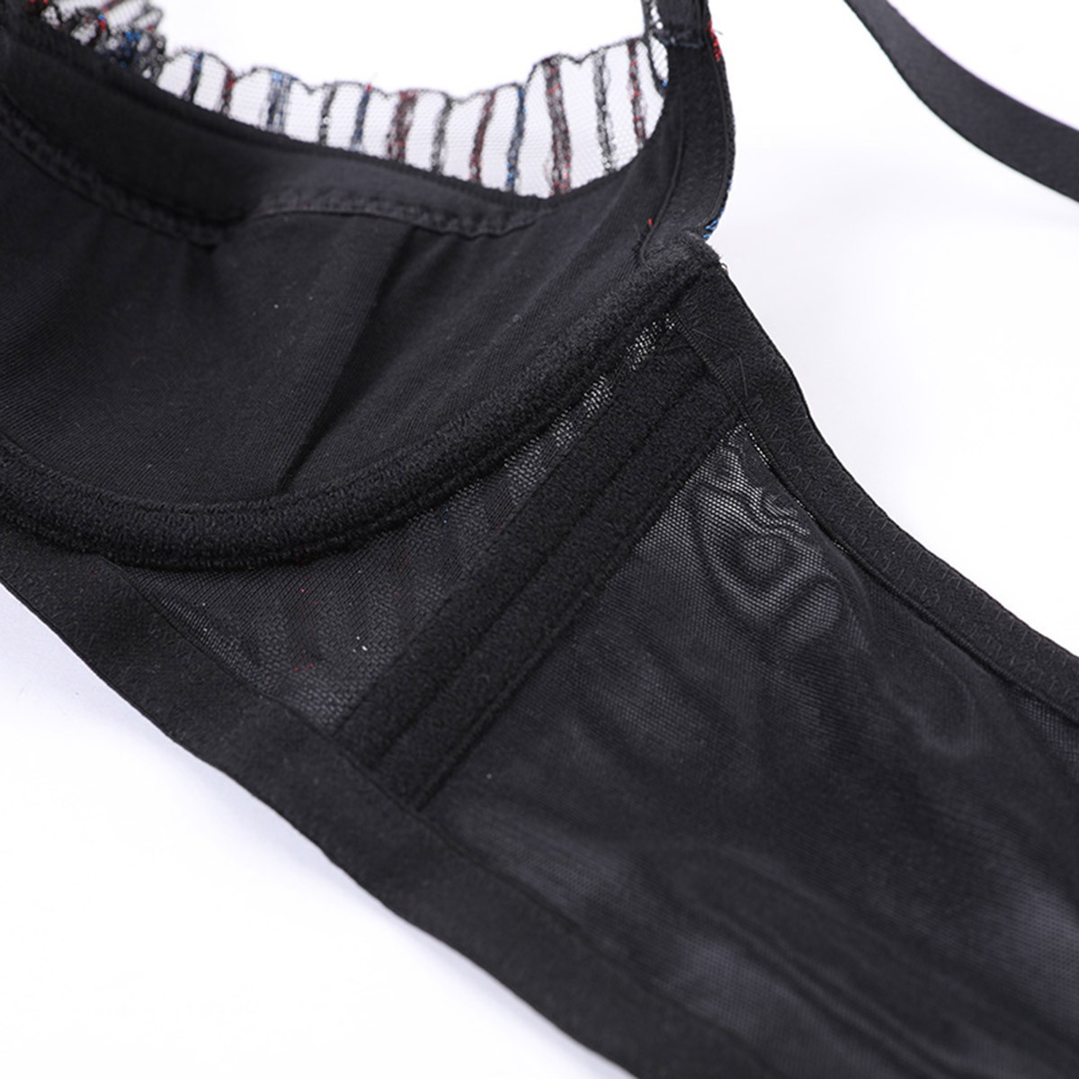 【撞色丝线 浪漫刺绣】朦胧轻盈网纱厚模杯集中聚拢内衣文胸女