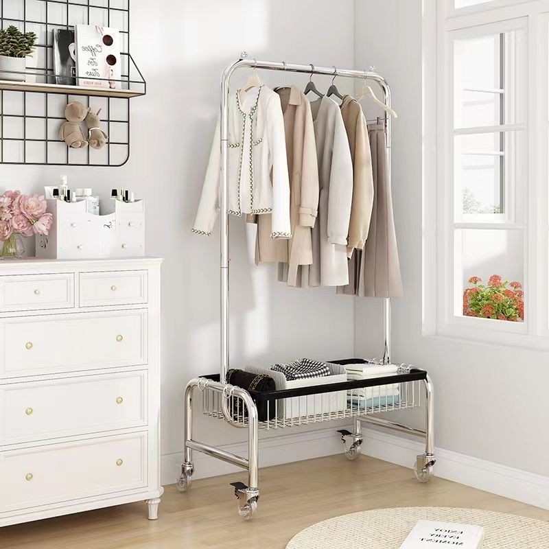落地挂衣架移动多功能收纳架子服装店展示架卧室带篮置物架