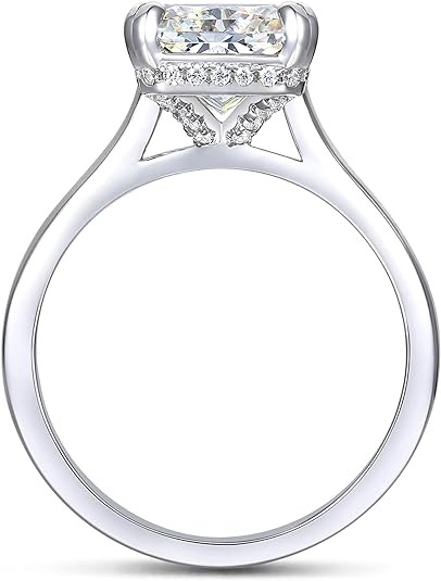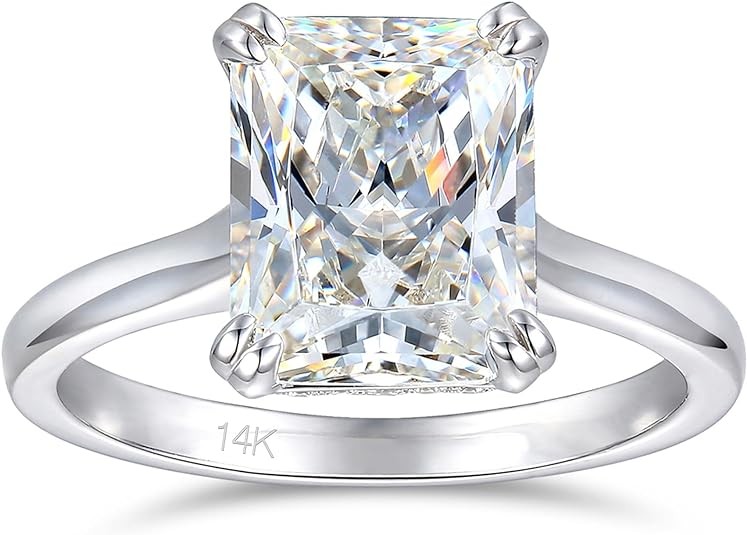 • 这款戒指的戒指宽度约为 2 毫米,8 爪镶 D 色 4 克拉辐射莫桑石(8x10 毫米),莫桑石具有非常迷人的火色,就像真正的钻石。