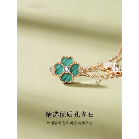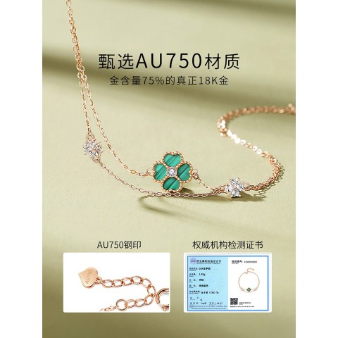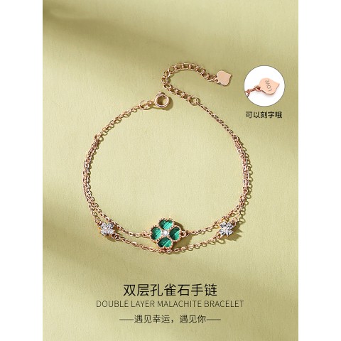 18k彩金双层四叶草手链女生款孔雀石手镯 SLK556咨询优惠