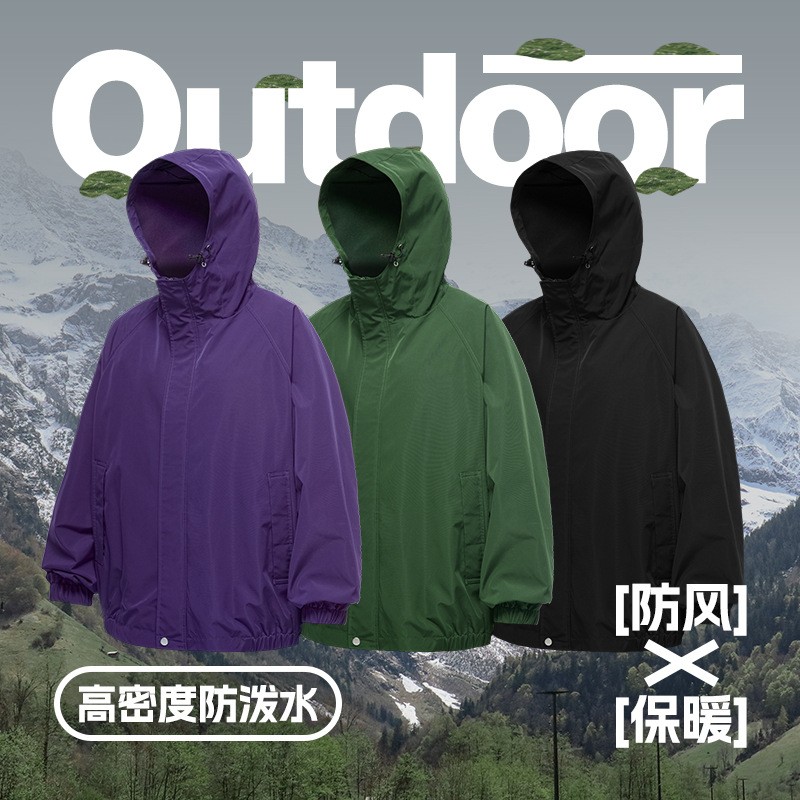 INF男装|3色极简拉链冲锋衣2023秋冬新品防风连帽宽松男外套夹克